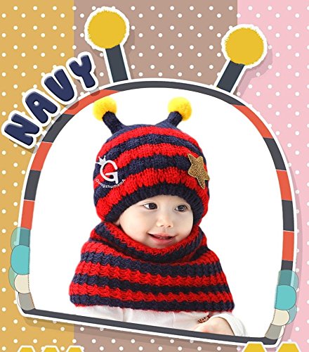 M0N0liTH ニット帽子 & ネックウォーマー あったか 防寒 ベビー 赤ちゃん キッズ 子供 子ども アウター (ネイビー)