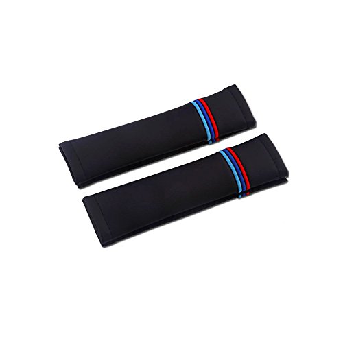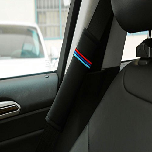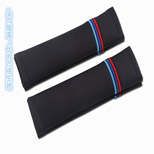 シートベルトパット、本革と上質の綿 柔かい 運転席枕 黒色 四季セット2点入り大人/子供に適用 (BLACK)