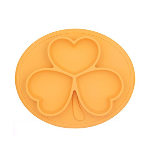 子供用 お食事マット ベビーの食器 水洗い 赤ちゃん 洗える ランチョンマット 吸盤付き 安全シリコン素材 かわいい三つ葉の形 食器 (オレンジ)