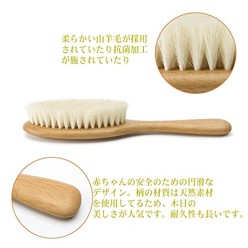- 新生児の頭皮はデリケート。沐浴後は肌も敏感になっていますので毛先が当たっても安心の優しい山羊毛をおすすめします。また、静電気防止のも魅力です。