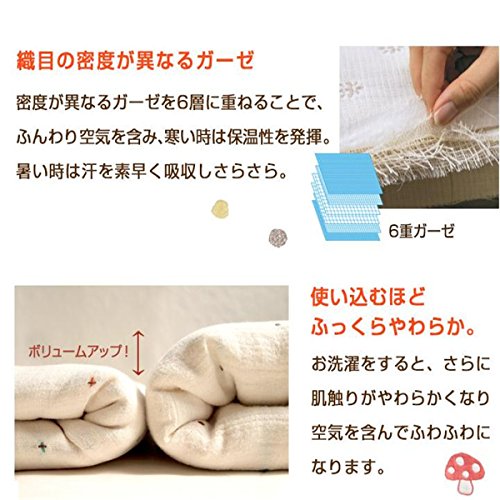 - 素材:綿100%オーガニックコットン(6重ガーゼ)使い込むほどやわらかく、肌に馴染んでいきます。