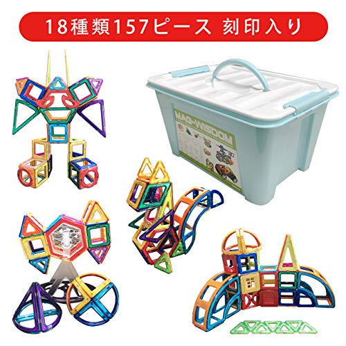 MAG-WISDOM マグウィズダァム 刻印入り マグネットブロック 18種類157ピース 磁石ブロック 知育玩具 おもちゃ 積み木 立体パズル 誕生日 入学 入園