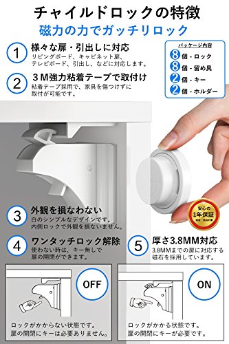 - ✅ 安心の1年保証 - 8ロック + 2キー + 2ホルダー (3M強力粘着テープ付き) 日本語説明書付き です。強力な磁気を使用しており、扉の有効厚さは38MMです。また、お客様に安心にご購入いただくため、保証期間を一年としており、返品、返金などを受け付けています。