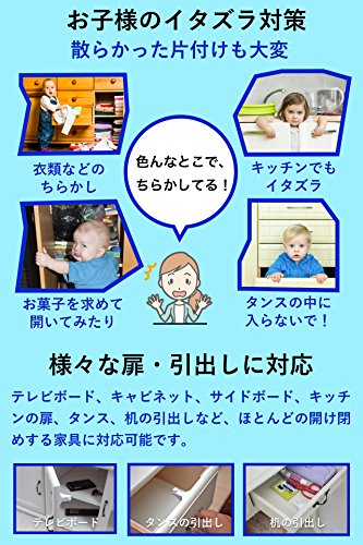 - ✅ いたずら防止 - 好奇心旺盛な赤ちゃんは見よう見まねで大人と同じ行動を取ろうとしますが、テレビボードやキャビネットの家具の中身を散らかして、片付けも大変です。開き戸、引出しなどをロックし、小さなお子様の力では 開けないようにする ので、事故から守るだけでなく、イタズラ対策としても有効です。