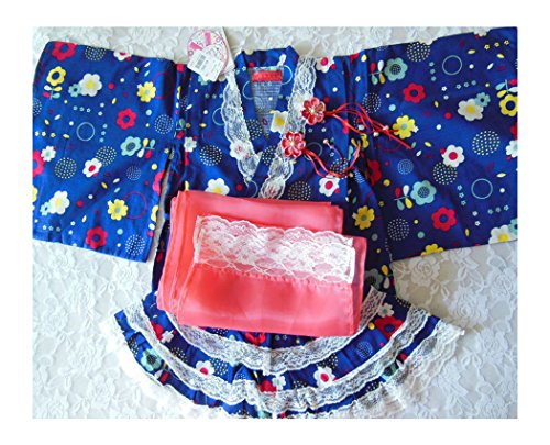 お首周りは肌触りを考慮したコットンレースを配しています - 帯は長め、そして帯の端にもフンダンにフリルを