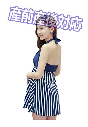 マタニティ水着 シマシマ水着ワンピ カップ付き 取外し可 妊婦水着 ボーダー柄 マタニティスイミング ママ水着 産後水着 ワンピース水着 ホルターネック水着 体型カバー 産前産後兼用 ネイビー/ピンク 大きいサイズ お腹カバー 3l LL/2XL/3XL/4XL
