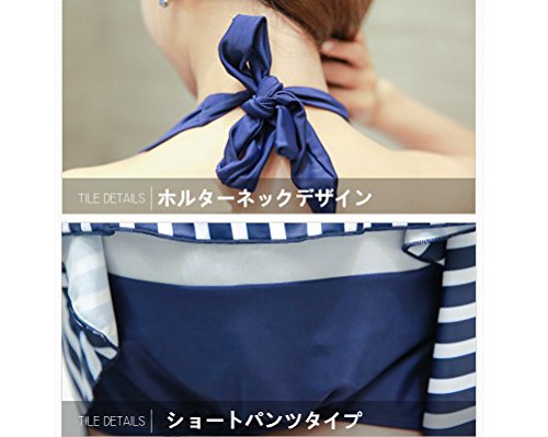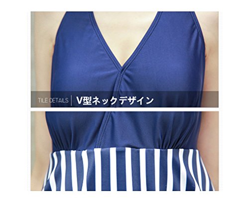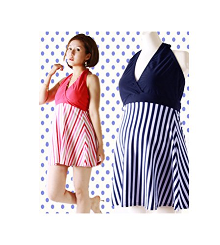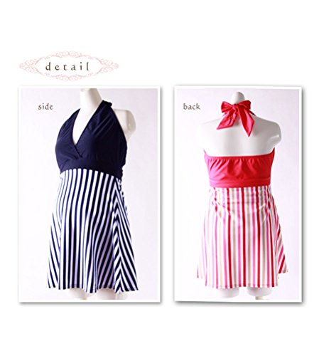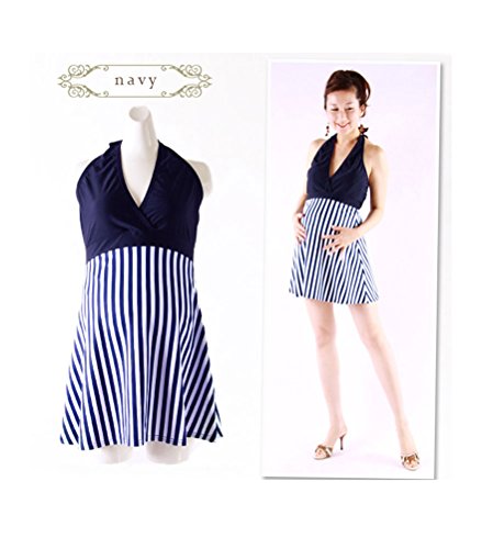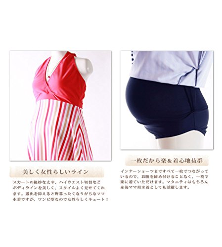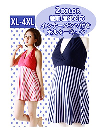 マタニティ水着 シマシマ水着ワンピ カップ付き 取外し可 妊婦水着 ボーダー柄 マタニティスイミング ママ水着 産後水着 ワンピース水着 ホルターネック水着 体型カバー 産前産後兼用 ネイビー/ピンク 大きいサイズ お腹カバー 3l LL/2XL/3XL/4XL