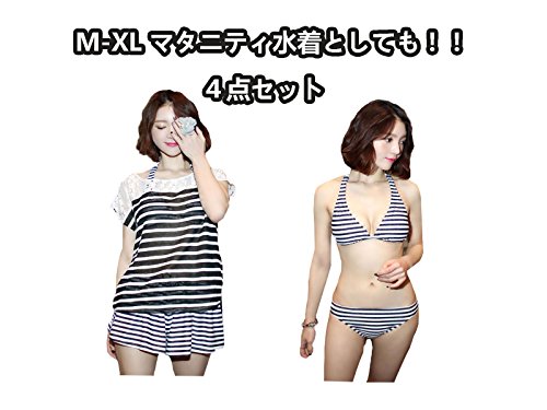 妊婦水着 マタニティ水着 パレオ付き ボーダースイムウェア マタニティスイミング 4点セット ママ水着 産後水着 ホルターネック ショートタンキニ 大きいサイズ/体型カバー S/M/LL/XL ボーダー柄 かわいい ボーダー水着 ママ 水着 体型カバー/ママ 水着 ワンピース 三角