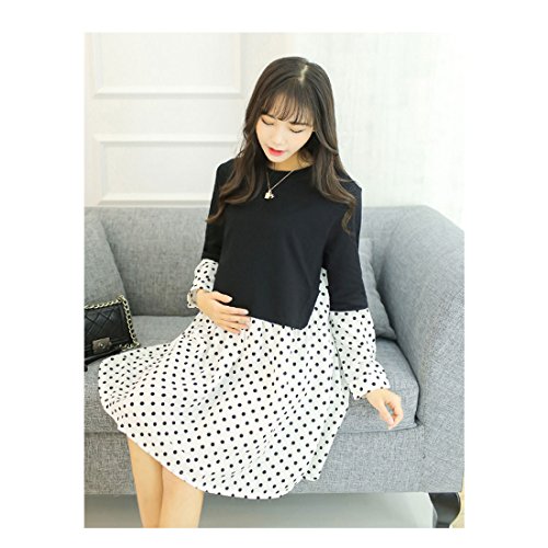 マタニティ ワンピース 授乳服 onepiece 授乳ワンピース マタニティウェア パーティドレス ドレス ワンピ ラウンドカラー 授乳機能付き 長袖 前開き・ロング丈 大きいサイズ 重ね着 レディ 妊婦 ママ レディース デザイン 授乳 ドット柄 水玉 エレガント クラシック 着回し力抜群