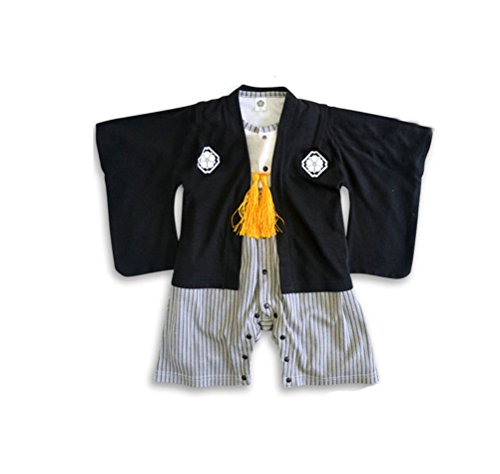 袴 ロンパース 袴 カバーオール はかま フォーマル 男の子 ブラック/ブルー 紋付き お正月 七五三 節句 百日祝い 出産祝い 誕生日 パーティー 結婚式 きもの風ロンパース 70cm/80cm/90cm 袴風オール 袴ロンパース かぶと ギフト ベビー 袴