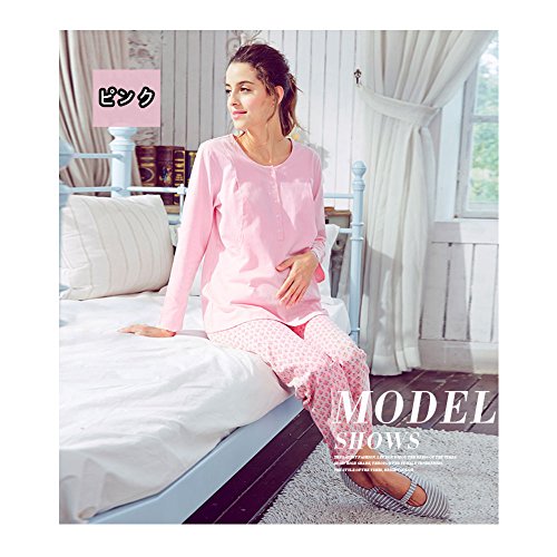 授乳服 マタニティ パジャマ 産後まで使える 上下セット 授乳口付きマタニティ パジャマ 前開き 授乳パジャマ お産 出産 赤ちゃん 妊娠 部屋着 M L XL ウエスト調節 マタニティナイティ 長袖 春夏 秋冬 綿 コットン ストレッチ 伸縮