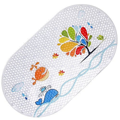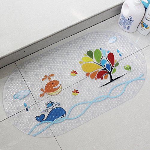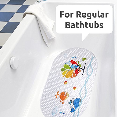 ノンスリップベビーバスマット吸盤付き浴槽、シャワー、カビ耐性、自然PVC、27 x 15インチ用キュートパターン設計、浴槽マットfor Kids (海魚) by maiyuan