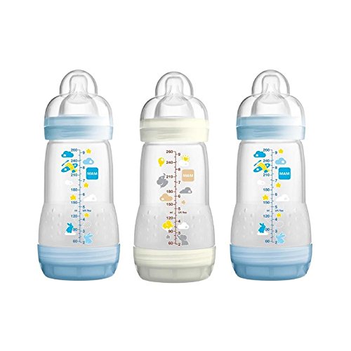 - 1パック3ブルー&ホワイト、抗疝痛自己滅菌ボトル260ミリリットルをMam (MAM UK LTD)