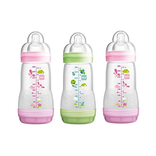 - MAM Anti Colic Self-Sterilising Bottle 260ml, Pink & Green 3 per pack (Pack of 4)