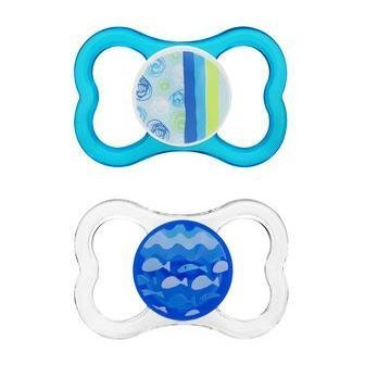 MAM Air Pacifiers (2 Per Pack) ~ Blue and Green ~ 6+ Months ~ Sterilize in Carrying Case (Included)