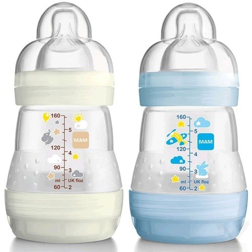 MAM BIBERON ANTICOLIQUE Africa Blanc-Bleu Lot de 2 T騁ine D饕it 1 (2 x 160 ml)