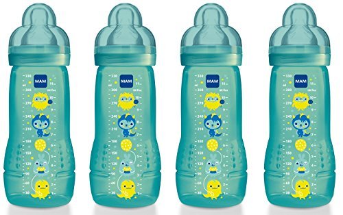 - MAM Baby Bottle with Fast Flow Teat (330 ml, Pack of 4, Blue)