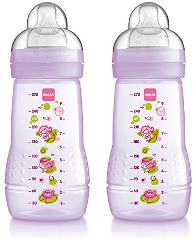 - MAM Baby Bottle with Medium Flow Teat 270 ml (Pink)