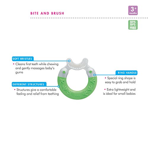 MAM Bite and Brush Teether, Blue, 3 Plus Months おしゃぶり ブルー