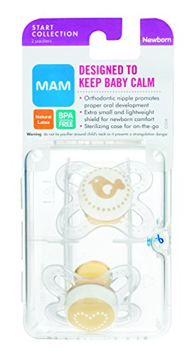 MAM Newborn Latex Start Orthodontic Pacifier, Unisex, 0+ Months, 2-Count by MAM