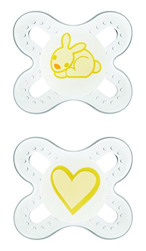 MAM Glow in the Dark Night Orthodontic Pacifier, Unisex, 0-6 Months, 2-Count by Newborn