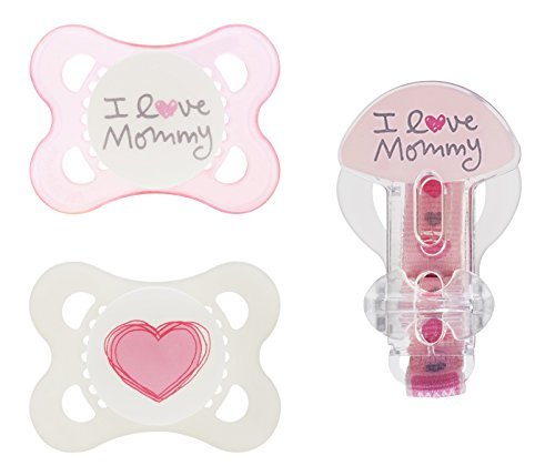 - MAM Love & Affection Orthodontic Pacifier with Clip Value Pack, I Love Mommy, Girl 0-6 Months, 2-Count