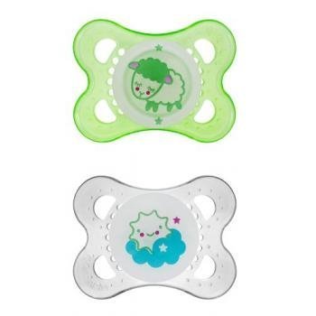 MAM Glow in the Dark Silicone Pacifiers 0-6 Months BPA FREE - Green (Styles May Vary) by MAM