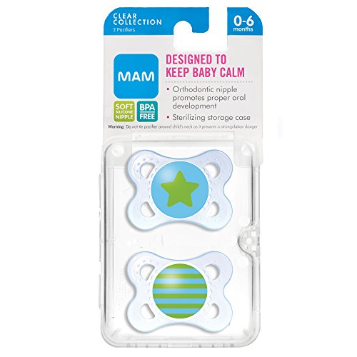 - MAM Clear Orthodontic Pacifier, Boy, 0-6 Months, 2-Count