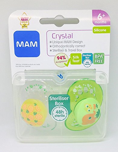 1パック2 Mam 結晶 6+M 個のおしゃぶり (花/象)、 (MAM UK LTD) - MAM Crystal 6+M Soother, 2 per pack (Flowers/Elephant) [並行輸入品]