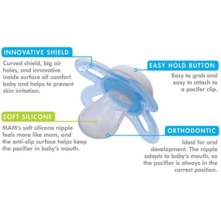アメリカで人気のMAMのおしゃぶりです。新品。アメリカ直輸入のため説明書き等すべて英語表記です。