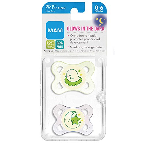 MAM Glows in the dark 暗闇で光る おしゃぶり 2個セット 0-6ヶ月用 (グリーン ひよこ) [並行輸入品]