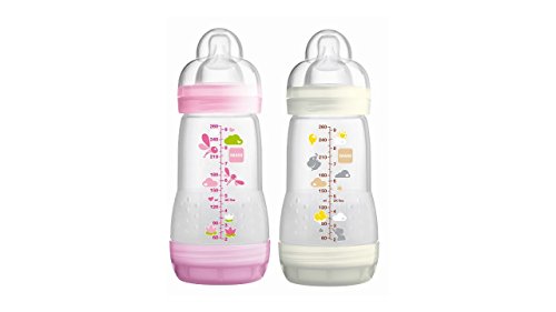 Mam 2 Anti-Colic Baby Bottles 260ml 0-6 Months - Colour : Transparent pink with patterns