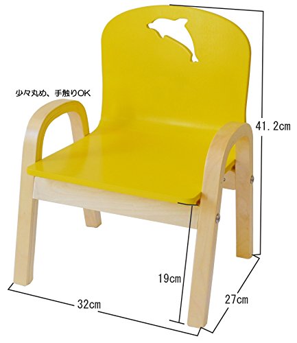 ・子供が好きなかわいいイルカの形を椅子の背もたれに彫っています。商品はイルカとクジラのくり抜きの二種類が有り、カラーはナチュラル・レッド・イエロー・スカイブルーの四色になります。 ・手すりが少し丸めで、手触り滑らかです。商品は組立済み商品になりますので、組立不要です、 ・木製になりますので節の茶色の部分がみられる場合があります。