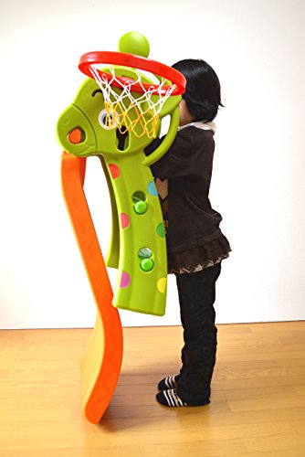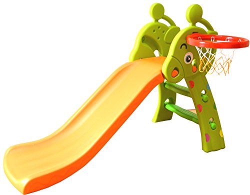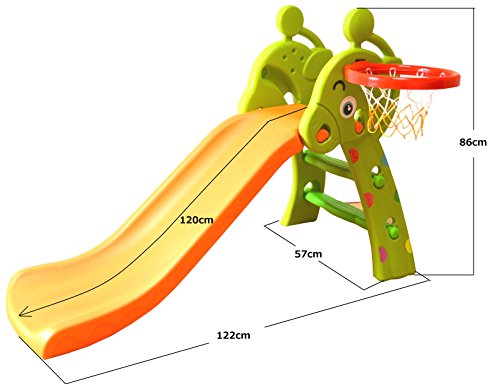 MAMENCHI バスケットゴール付滑り台 可愛いキリン  オレンジグリーン