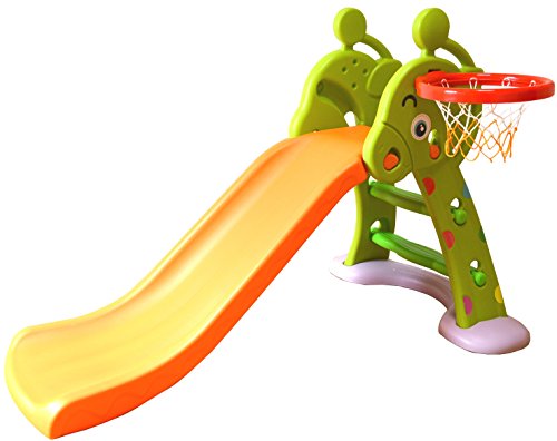 MAMENCHI バスケットゴール・キリン ・安定補強板付滑り台(安定性抜群!) オレンジグリーン