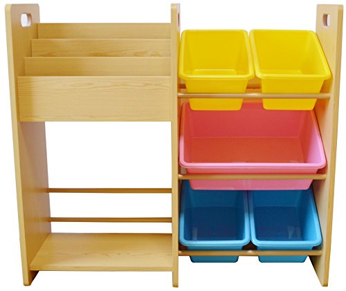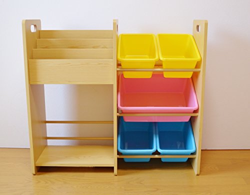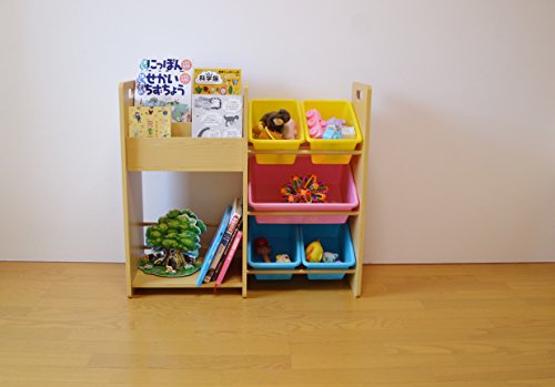MAMENCHI 玩具箱&絵本木製ラック (組立簡単、多様な収納力)
