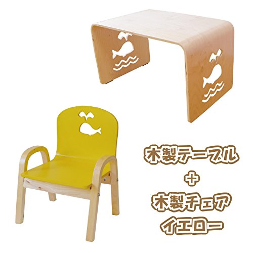 MAMENCHI 木製テーブル クジラと選べる木製チェアカラー1脚 (イエロー)