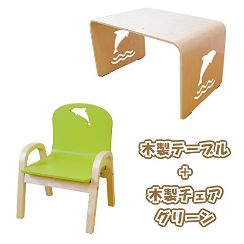 MAMENCHI 木製テーブル イルカと選べる木製チェアカラー1脚 (グリーン)