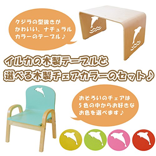 こちらの商品はイルカのテーブルと木製椅子のセットの商品になります。椅子は、イルカ椅子カラー5種類から選んでください。 こちらはセットになりますので、テーブルだけ、椅子だけをご希望の方は別のページからご購入手続きお願いいたします。 こちらの商品は薄い木の板を1枚ずつ何枚もあわせて曲げる量産商品です。木の節・模様・少々の色ムラ・小さな傷などによるご交換は受けておりません。ご了承お願い致します。