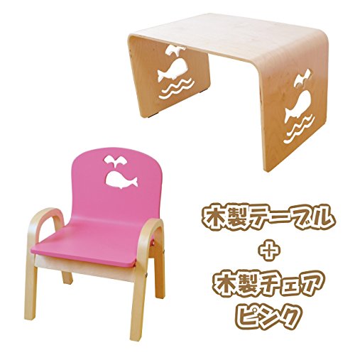 MAMENCHI 木製テーブル クジラと選べる木製チェアカラー1脚 (ピンク)