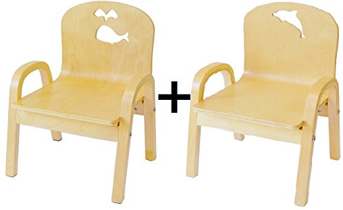 MAMENCHI 木製キッズチェア 2脚セット 組立済 (クジラナチュラルとイルカナチュラル)