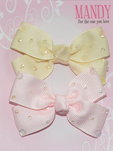 MANDY ベビー ヘアアクセサリ Sequin Clips Ivory & Light Pink マンデイ スパンコール リボン クリップ アイボリー&ライトピンク 0150