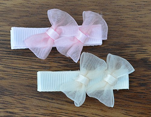 MANDY Sheer Ribbon Bows Lt Pink & Ivory