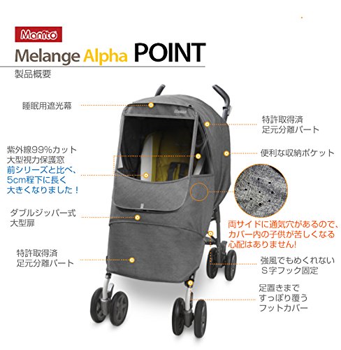 雨風はもちろん、防寒、PM2.5からも子供を守れる! マニト メランジアルファ ベビーカーカバー (アルファ, ネイビー)