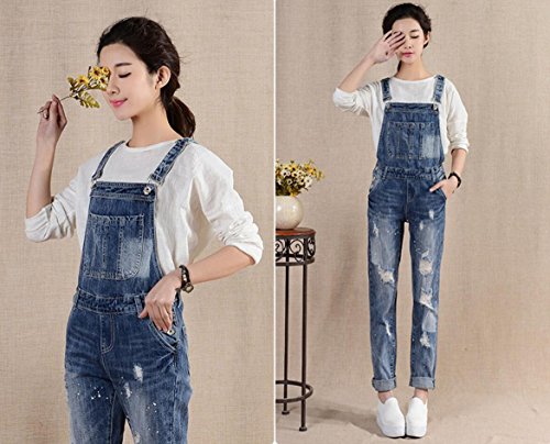 (マリア)MARIAH サロペット デニム ゆったり オールインワン レディース ダメージデニムオーバーオール 美脚 ダメージスキニー ジーンズ サルエル パンツ ズボン カジュアル マタニティ