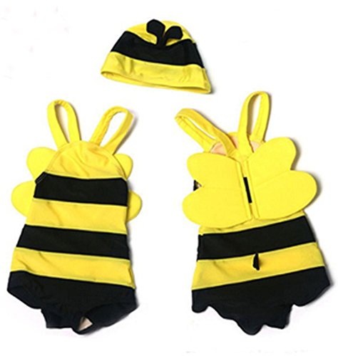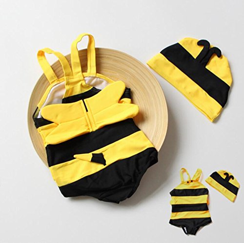 (マリア)MARIAH ガールズ 水着 子供 キャップ付 上下 2点セット 黄色 L