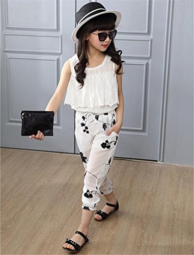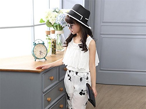 MARIAH(マリア) 上下セット 2点セット セットアップ Tシャツ パンツ 半袖 女の子 キッズ ホワイト 120CM