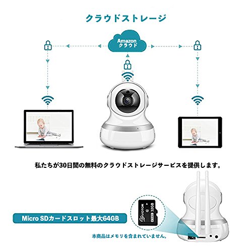 - 最新のクラウドストレージ機能が使えて、メモリカードを使用する必要はありません。私たちが30日間の無料のクラウドストレージサービスを提供します。いかなるデータも暗号化にられて、あなたのビデオ情報が守られて、だれでも、どの組織でもあなたのビデオを検査する権限がありません。