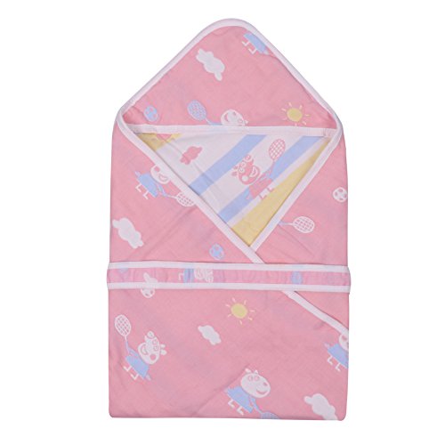 F's MAUMU 赤ちゃん ベビー おくるみ 綿 ガーゼ 6枚重ね フード & 紐 付 バスローブ ブランケット 沐浴 出産祝い (B)