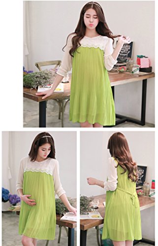 マタニティ きれいめ ワンピース ギャザー ピンク ネイビー 全5色 L XL 妊婦 (XL, グリーン)